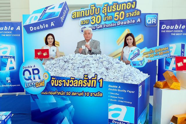 นายชาญวิทย์ จารุสมบัติ รองกรรมการผู้จัดการใหญ่ ดั๊บเบิ้ล เอ จับรางวัลผู้โชคดีครั้งที่ 1 จากแคมเปญ Double A QR Lucky Gold เพื่อรับรางวัลทองคำหนัก 50 สตางค์ จำนวน 10 รางวัล และจับรางวัลครั้งต่อไปในวันที่ 7 กันยายน 2561 สำหรับผู้ที่สนใจร่วมสนุก สามารถสแกนคิวอาร์โค้ดข้างกล่องดั๊บเบิ้ล เอ โดย 1 QR ได้ 1 สิทธิ์ลุ้นทองคำ ยิ่งสแกนมาก ยิ่งมีสิทธิ์มาก เริ่มตั้งแต่วันนี้- 30 กันยายน 2561 ติดตามรายละเอียดและรายชื่อผู้โชคดีทางwww.facebook.com/DoubleAPaper
