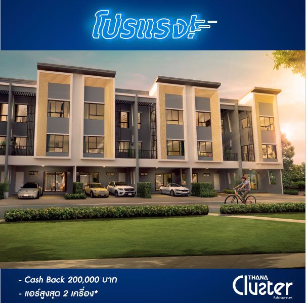 ธนาคลัสเตอร์ ราชพฤกษ์ ทาวน์โฮม 3 ชั้น ดีไซน์ใหม่ หน้ากว้างสูงสุด 8 เมตร ห้องนอนใหญ่ สไตล์ Penthouse พร้อม Social Space ในสังคมส่วนตัวเพียง 77 ยูนิต เพียง 5 นาที ถึงรถไฟฟ้า คุ้มค่าทุกมิติ กับบ้านที่ทำงานและทำเงิน ในราคาเริ่มต้นที่ 3.49 ล้านบาท รับ Cash Back 200,000บาท พร้อมแอร์สูงสุด 2 เครื่อง *