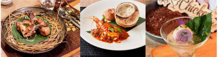 และเมนคอร์ส สุดพิเศษ ที่เชฟคัดสรรมาเสิร์ฟ แบบได้มนต์เสน่ห์ของอีสานแท้ๆ กับเมนู “สะโพกไก่ เบญจา รมควัน กับน้ำจิ้มแจ่วอีสาน” (Smoked Benja Chicken thigh with ISAN-Style Jaew sauce) ด้วยวัตถุดิบคัดพิเศษ ไก่ระดับพรีเมี่ยม เบญจา ชิกเก้น ส่วนสะโพกติดน่องชิ้นโต เนื้อนุ่ม แน่น นำมาหมักและรมควันด้วยเนื้อและกาบมะพร้าว จากนั้นนำไปอบให้เนื้อสุกกำลังดี หนังกรอบหอมอร่อย ได้รสชาติ ความหอม นุ่ม ฉ่ำ ของเนื้อไก่ ความหอมของมะพร้าวรมควัน และรสชาติของน้ำจิ้มแจ่วที่ลงตัว ทานคู่กับ “แกงพลัดถิ่นกุ้ง กับใบชะคราม” (Gang Plad Thin with Prawn and Thai’s samphire) อีกเมนูที่เป็นแกง ตำรับใหม่สไตล์เชฟหนุ่ม เสิร์ฟพร้อม “ข้าวหอมมะลิอบกับน้ำมะพร้าวเผา สามพราน” (Steamed Jasmine rice with Smoked samphran coconut water) เมนคอร์ส ทั้งสามเมนู จึงเป็นเมนูที่เชฟรังสรรค์เป็นพิเศษ ทั้งการเลือก วัตถุดิบที่เป็นที่สุดของไทย วิธีการปรุงที่ละเมียดละไม ได้รสชาติอันเป็นเอกลักษณ์หาทานที่ไหนไม่ได้