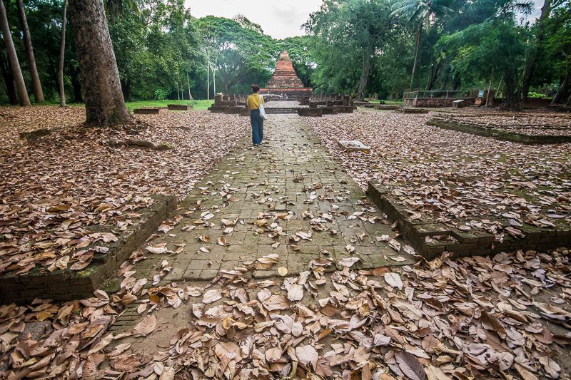 เราเข้ามาในอุทยานเมืองเก่า แล้วมุ่งหน้าไปที่ วัดมหาธาตุ ซึ่งเคยตั้งอยู่กึ่งกลางของเมืองพิจิตรเก่า โดยกรมศิลปากรได้ประกาศขึ้นทะเบียนโบราณสถานของวัดนี้เมื่อ พ.ศ.2478 ประกอบไปด้วยพระธาตุเจดีย์ เป็นเจดีย์ทรงลังกา ด้านหน้าพระเจดีย์เป็นที่ตั้งของวิหารเก้าห้อง