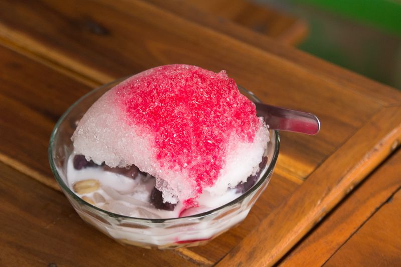 ระหว่างรอก็สังเกตได้เลยว่า น้ำแข็งใสเจ๊ฉวี เขามีดีจริงๆ เพราะมีลูกค้าทั้งคนในท้องถิ่นและนักท่องเที่ยวเข้ามาเยือนไม่ขาดสาย