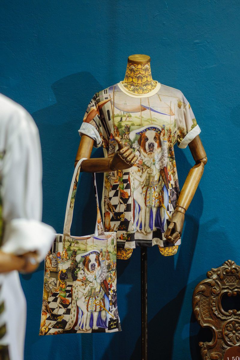 สร้างสไตล์อันโดดเด่นให้กับผู้สวมใส่ ผ่านชุดเดรสยาว เสื้อเชิ้ต เสื้อยืด ผ้าพันคอ ผ้าคลุมไหล่ และกระเป๋าผ้าทรง Tote ที่มีลวดลายพิมพ์อ่อนช้อยราวกับชิ้นงานภาพเขียนต้นฉบับทั้ง 5 แบบ ได้แก่ ภาพ La mort aux dents, La Belle et Bête, Le Mariage Mystique de Prince Noui à Vellara, Le Bal และข้อความภาษาฝรั่งเศสที่เป็นพระปณิธานของท่านหญิง แปละเป็นไทยว่า “ศิลปะสะท้อนชีวิต และ ความตาย ฉันจะใช้ความสามารถของฉันถ่ายทอดออกมา” ที่บรรจงปักบนทีเชิ้ตแบบเรียบหรูสไตล์มินิมัล