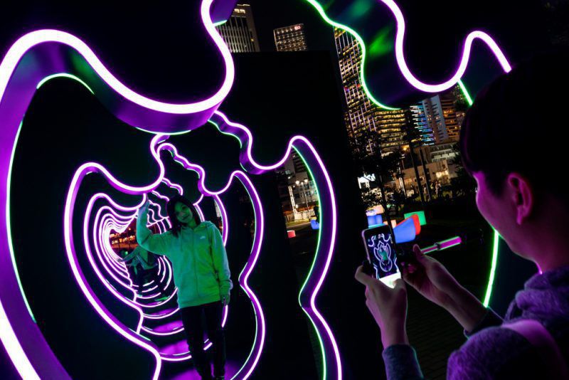 ผลงานไฟประดับสุดสร้างสรรค์จะชวนให้ผู้ที่มาเยือนได้สัมผัสประสบการณ์การชมไฟแบบอินเทอร์แอคทีฟล้ำสมัยราวอยู่ในโลกอนาคต แถมได้มุมสวย ๆ อาร์ต ๆ ไว้ถ่ายรูปอัพลงโซเชียลมีเดียกันอีกเพียบ อาทิ งานอินสตอลเลชั่น Talking Heads ของ Viktor Vicsek อาร์ทติสท์หนุ่มจากฮังการี ที่จะถูกปลุกให้มีชีวิตขึ้นมาด้วยอะนิเมชั่นใบหน้าหลากหลายแบบที่จะเปลี่ยนสีไปเรื่อย ๆ ในยามค่ำคืน หรืองานไฟประดับอินเทอร์แอคทีฟ “Lightbattle X” by VENIVIDIMULTIPLEX จากเนเธอร์แลนด์ ที่ใช้จักรยานมาเป็นไอเดียหลักของงาน พร้อมจัดแสดงให้ผู้ชมได้ดำดิ่งสู่โลกการแข่งขันที่ทั้งตื่นเต้นเร้าใจและกระตุ้นพลังใจไปพร้อมกัน ในขณะที่งานนิทรรศการ Bat and Coin ของศิลปินฮ่องกง The Daydreamers ซึ่งเปิดตัวในงานนี้เป็นครั้งแรก ก็จะแปลงโฉมป้ายสัญลักษณ์โรงรับจำนำดั้งเดิมของฮ่องกงให้กลายเป็นภาพแสงเงาประดับไฟขนาดยักษ์ สร้างความแปลกใหม่ต่างจากมุมมองวิถีท้องถิ่นอันคุ้นตา