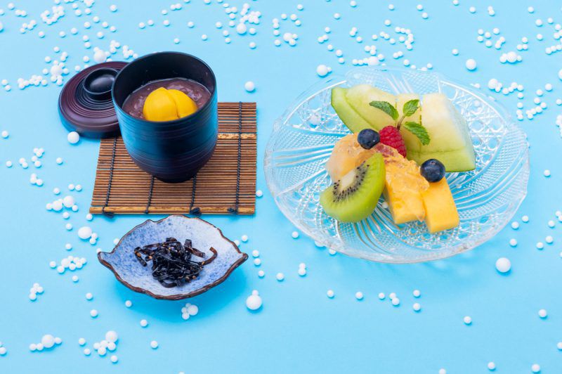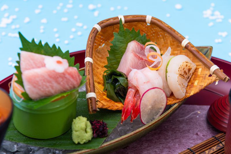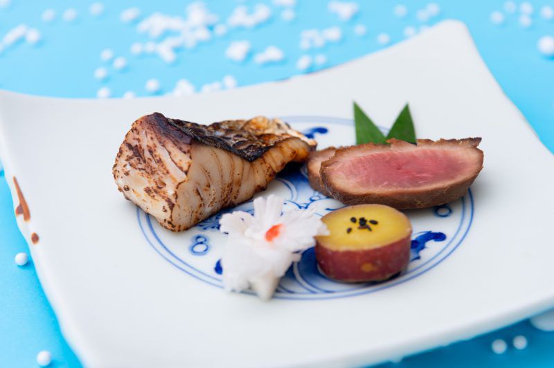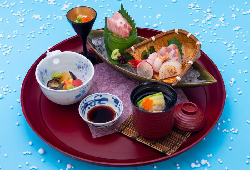 อาหารชุดมื้อค่ำให้บริการแบบ “ไคเซกิ” ตามแบบราชสำนักญี่ปุ่น ราคาท่านละ 4,700++ บาท ประกอบไปด้วยอาหารญี่ปุ่นรสชาติต้นตำรับทั้งหมด 7 รายการ ได้แก่ ฟองเต้าหู้สดกับดอกกระเจี๊ยบราดซอสสูตรพิเศษ ซุปลูกชิ้นตับปลามังค์ฟิชและเห็ด ที่ให้บริการพร้อมกับปลาดิบชั้นดี 4 ชนิด (ปลาทูน่า ปลาหางเหลือง หอยเชลล์เผา กุ้งหวาน) แล้วจึงตามด้วยปลาแมคคอเรลและเป็ดย่างกับพริกซันโชญี่ปุ่น ปลาแซลมอนตุ๋นกากสาเกและผักนานาชนิด เทมปุระปูหิมะ ปลาเงิน และผักต่าง ๆ สุดท้ายให้บริการเส้นหมี่น้ำญี่ปุ่นใส่ไข่ปลาคอดและเห็ดชิเมจิโรยหน้าด้วยผิวยูซุกับข้าวห่อสาหร่ายไส้ผักดองญี่ปุ่น และจึงให้บริการขนมหวานเป็นถั่วแดงต้มใส่เกาลัดเสิร์ฟกับสาหร่ายทะเล