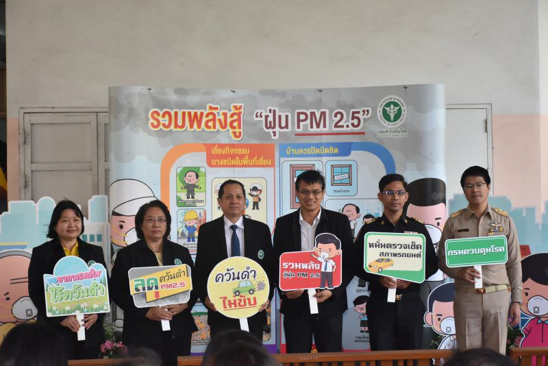 กรมควบคุมโรค กระทรวงสาธารณสุข  จัดกิจกรรมรณรงค์รวมพลังสู้ฝุ่น PM 2.5  โดยมาตรการ “ตรวจสภาพรถ งดปล่อยควันดำ”  พร้อมประกาศ 3 นโยบายสำคัญของกรมควบคุมโรค ในการเป็นส่วนหนึ่งของการลดการเกิดฝุ่นละอองขนาดเล็ก หรือ PM 2.5 ในอากาศ  เน้นลดการใช้รถยนต์ และการหมั่นตรวจสอบสภาพรถ