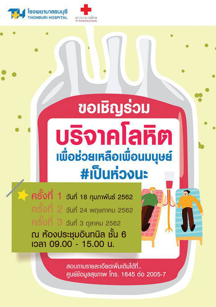 โรงพยาบาลธนบุรี ขอเชิญร่วมบริจาคโลหิต