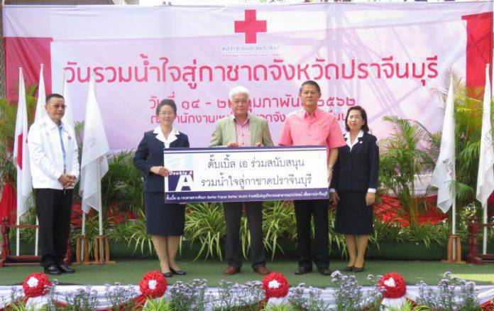 นายชาญวิทย์ จารุสมบัติ รองกรรมการผู้จัดการใหญ่ ดั๊บเบิ้ล เอ มอบเงินสนับสนุนกาชาดจังหวัดปราจีนบุรี เพื่อใช้ในกิจกรรมสาธารณประโยชน์และช่วยเหลือบรรเทาทุกข์ให้กับประชาชน โดยมีนางอังคณา หัตถกิจโกศล นายกเหล่ากาชาด เป็นผู้รับมอบในกิจกรรมวันรวมน้ำใจสู่กาชาด ณ สำนักงานเหล่ากาชาด จ.ปราจีนบุรี