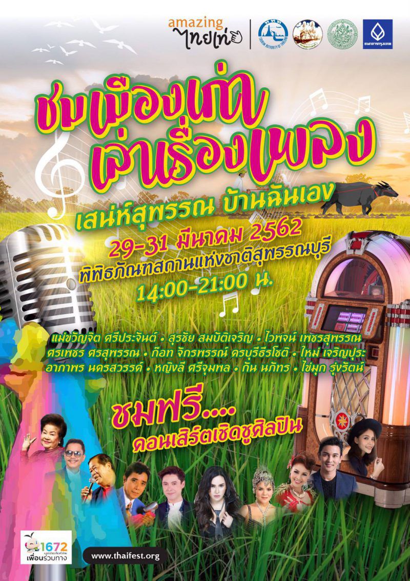 การท่องเที่ยวแห่งประเทศไทย (ททท.) ปลุกกระแสเที่ยวเมืองรอง ชวนคอเพลงลูกทุ่งร่วมงาน “ชมเมืองเก่า เล่าเรื่องเพลง”…เสน่ห์สุพรรณ บ้านฉันเอง ร่วมเชิดชูศิลปินและอนุรักษ์มรดกทางวัฒนธรรมให้คนรุ่นใหม่ พร้อมสร้างรายได้สู่ท้องถิ่น ชมฟรีตลอดงาน