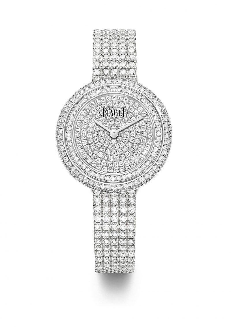 และตัวเรือนไวท์โกลด์ขนาด 29 มิลลิเมตร (G0A44083) ชิ้นงานที่หยิบเอาความสง่างามของเพชรเม็ดงามถึง 621 เม็ดมาหลอมรวมไว้บนทุกชิ้นส่วนอย่างประณีต สื่อถึงหัตถศิลป์อันเชี่ยวชาญของแบรนด์ได้อย่างไร้ที่ติ