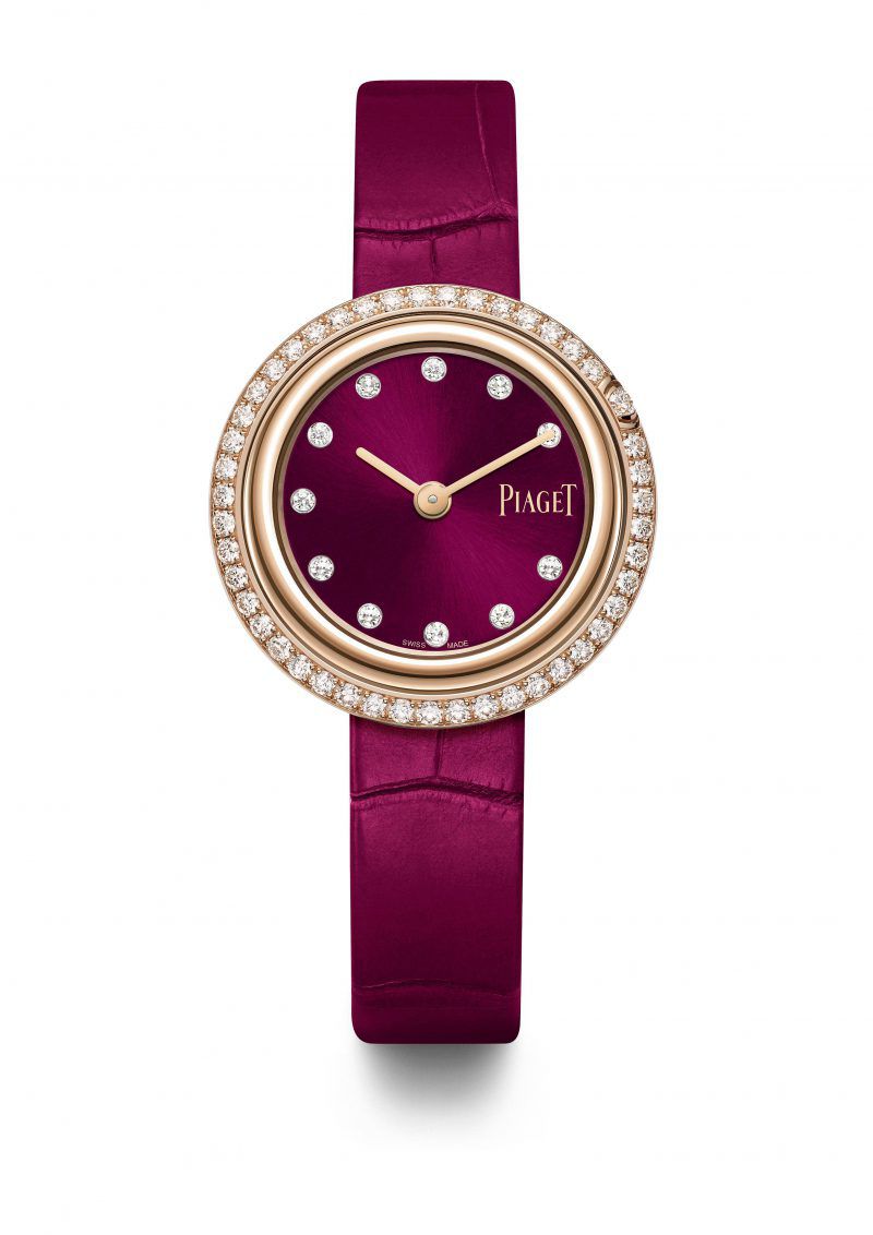 ตัวเรือนโรสโกลด์ 18 กะรัต โดดเด่นด้วยพื้นหน้าปัดสีแดงเชอร์รี่ มาพร้อมอินเด็กซ์บอกเวลาหลักชั่วโมงประดับเพชร 11 เม็ด มีให้เลือก 2 ขนาด; 29 มิลลิเมตร (G0A44086) ขอบตัวเรือนประดับเพชรบริลเลียนต์คัต 42 เม็ด และ 34 มิลลิเมตร (G0A44096) ขอบตัวเรือนประดับเพชรบริลเลียนต์คัต 46 เม็ด จับคู่สายหนังจระเข้สีเดียวกับหน้าปัด