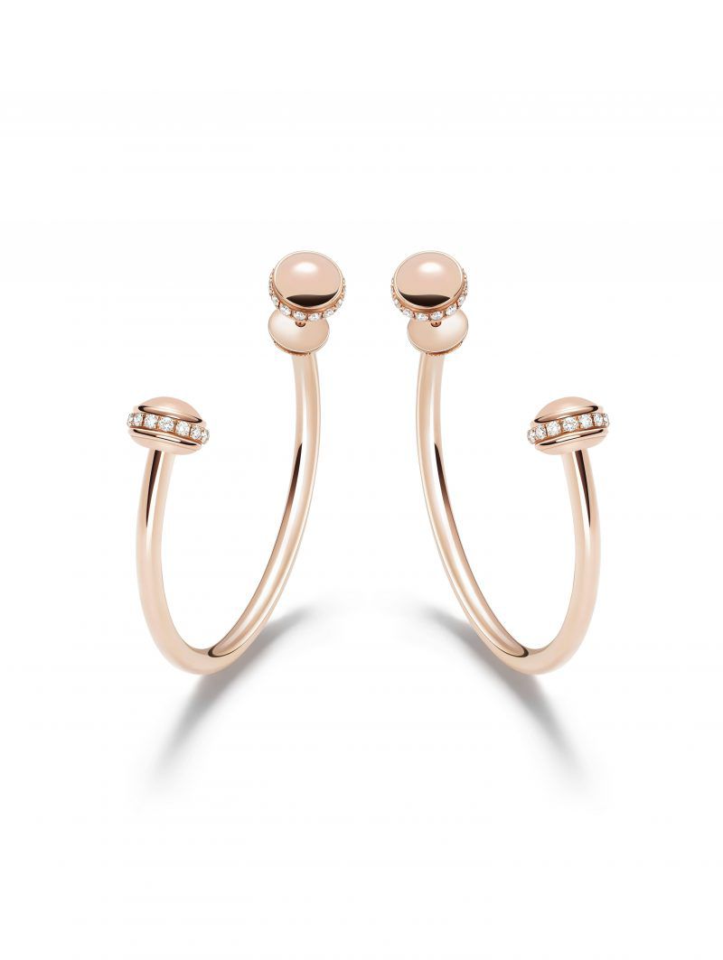 นอกจากนี้เพียเจต์ยังนำเสนอตุ้มหูห่วงให้เหล่าสสุภาพสตรีได้สนุกมากยิ่งขึ้น โดยปลุกจินตนาการมาจากดีไซน์ระดับไอคอนของกำไลข้อมือ มีให้เลือก 2 ขนาด;