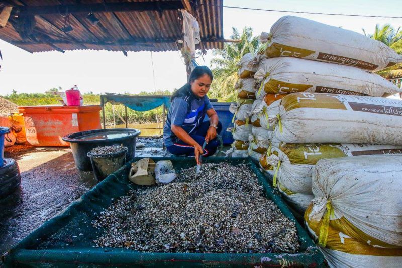 แล้วใครล่ะจะกินเจ้าหอยตัวกระจ๊อยนี้ จริงๆ แล้วคนก็กินได้ แต่ที่กินดีคือกุ้ง เพราะนี่คืออาหารกุ้งชั้นเลิศ เป็นอาหารจากธรรมชาติที่ปลอดภัยและส่งเสริมการเจริญเติบโตของกุ้ง ขายกันราคาที่ 15 บาทต่อกิโลกรัม แอบถามชาวบ้านที่ทำหอยตอกบอกว่า ขยันหน่อย 3-4 วัน ก็ได้แล้ว 10,000 บาท เพราะหอยตอกไม่ได้หากันง่ายๆ และมีมากในแถบนี้ ลากอวนมาแต่ละทีก็ขายหมดเป็นเทน้ำเทท่า