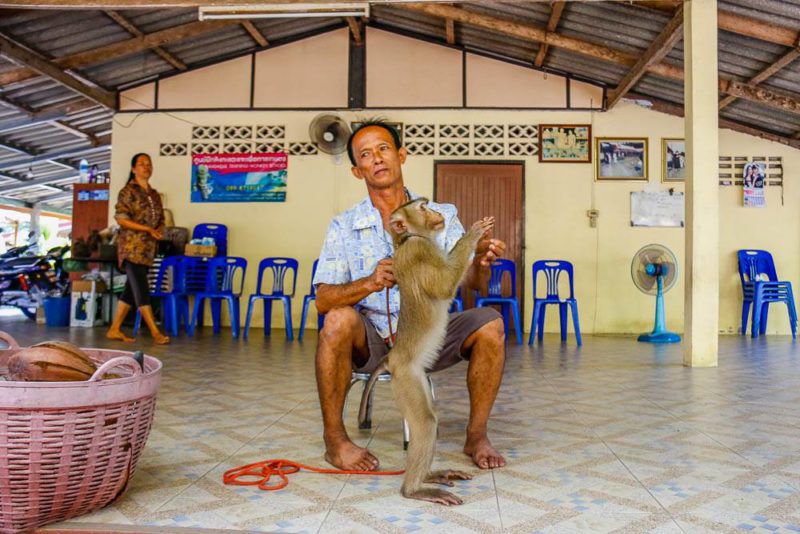 ลิงที่ได้รับการฝึกฝนจะมีความสามารถในการเก็บมะพร้าวและแสดงโชว์ต่างๆ อย่างเช่น การเก็บของตามคำสั่ง หรือ การปั่นจักรยาน  ว่างจากงานโชว์คุณศักดิ์ก็จะพาลิงออกไปรับจ้างเก็บมะพร้าว ซึ่งลิงระดับเซียนเคยเก็บมะพร้าวได้ถึง 900 ลูกต่อวัน โดยค่าจ้างอยู่ที่ 1-3 บาทต่อลูก