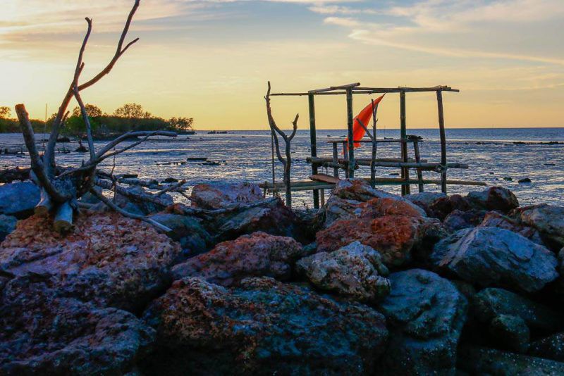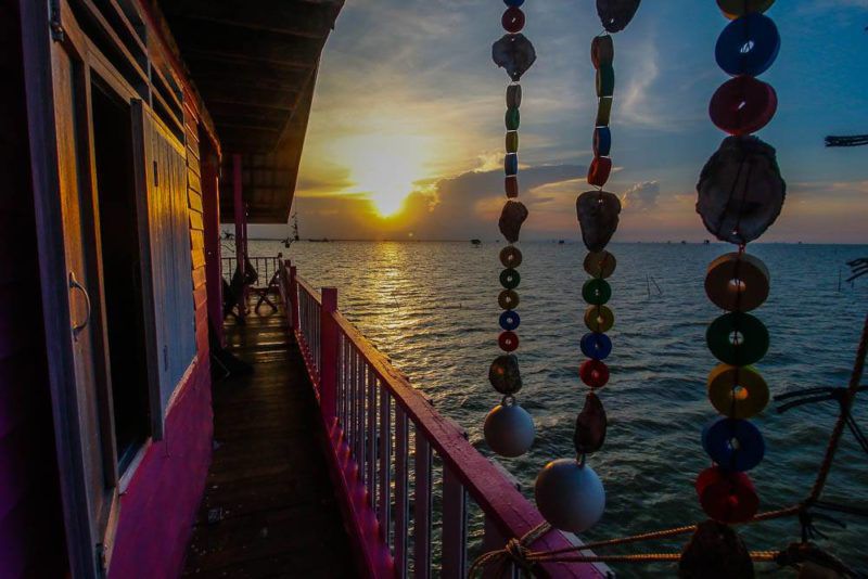 ลงเรือมาจาก ต.ท่าทองใหม่ แล้วจะเห็น “ขนำ” ที่คล้ายกับ “กระเตง” ของทางภาคกลาง อันเป็นที่พักหลบแดดหลบฝนของชาวประมง ขนาดเล็กใหญ่แตกต่างกันไป เพราะขึ้นชื่อว่า “ขนำ” เป็นเพียงกระท่อมที่พักชั่วคราว แต่ก็ไม่ได้ห้ามว่าอย่าอยู่นาน ดังนั้นใครอยากสร้างขนำเพื่อความสะดวกสบายแบบไหนก็ตามใจผู้อยู่กันเลย ดังนั้นเราจึงมองเห็นขนำหลากแบบหลายขนาด แต่ที่เป็นเป้าหมายใหม่คือ “รุ่งแสงตะวันฟาร์มสเตย์” ที่เพิ่งเปิดได้ไม่นาน