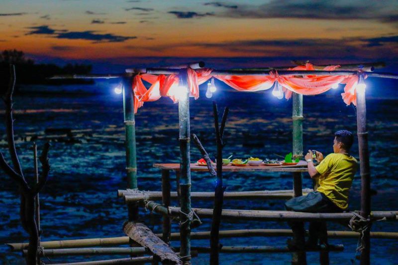 ใครอยากได้โต๊ะวีไอดี พี่เสือก็จัดให้ได้ เพราะมีโต๊ะไม้ที่อยู่ใกล้ชายหาด หากยามน้ำขึ้นก็กลายเป็นโต๊ะกลางทะเล ยามเย็นน้ำลดก็ออกไปนั่งชิลล์ได้ ตกค่ำมาคือช่วงเวลาอันสุดพิเศษ กินลม ชมดาว กินข้าว ชมจันทร์ เรียกได้ว่า หาที่ไหนก็ไม่เหมือน บรรยากาศเหมือนมาเที่ยวบ้านเพื่อน แต่ชิลล์กว่าโรงแรมวิวหลักล้านเลยก็ว่าได้
