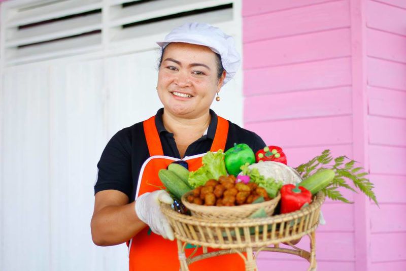 หากมาเป็นหมู่คณะ กำนันก็จะชักชวนให้กลุ่มแม่บ้านที่มีการแปรรูปหอยมาโชว์และให้ชิมกันถึงขนำ อย่างวันนี้ มีร้าน “ครัวหอยใหญ่ by คุณแต๋ว” ซึ่งเป็นหนึ่งในผู้ทำฟาร์มหอยนางรมมากว่า 30 ปี นำเมนู น้ำพริกหอยนางรม ขนมจีบหอยนางรม และทอดมันหอยนางรม มาให้ชิม