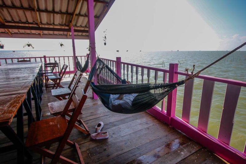 ขนำขนาดที่รับคนได้แบบสบายๆ หลายสิบคน มีความโปร่งโล่งสบาย ลมพัดโบกทุกด้าน ไม่ว่าอยู่มุมไหน ก็เลือกนอนชิลล์บนเปลได้ ปัจจุบันมีมุมครัว  มีห้องน้ำ 1 ห้อง มีห้องพักแบบเรียบง่ายนอนได้หลายคน แต่ตอนนี้ยังไม่เปิดให้แขกค้างคืน แต่จะเปิดให้เข้ามาพักผ่อนในช่วงกลางวัน เริ่มจากช่วงเที่ยงๆ บ่ายๆ แล้วไปปิดฉากที่พระอาทิตย์ตกดิน ก่อนจะกลับเข้าฝั่ง