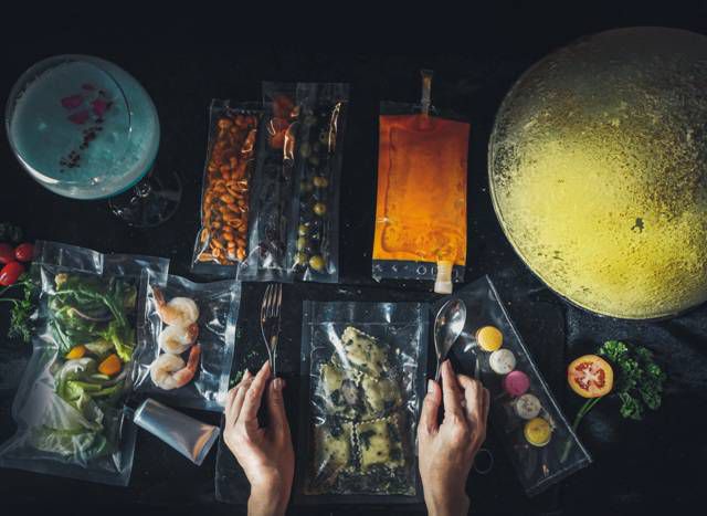 สัมผัสประสบการณ์การรับประทานอาหารแบบนักบินอวกาศกับอาหาร 5 คอร์ส เริ่มต้นจากอาหารเรียกน้ำย่อย 2 เมนู ได้แก่ Mergers of the Galaxy (ถั่วรสต้มยำสไตล์โฮมเมด ผลไม้อบแห้งหลากชนิดและมะกอกหมัก) Gradient of The Galaxy (ค็อกเทลกุ้งกับซอสเผ็ด) อุ่นท้องด้วย Solar System Soup (ซุปครีม มะเขือเทศ) ต่อด้วยอาหารจานหลักที่มีให้เลือก 2 แบบ Brightest Star (ลาวิโอลีผักโขมกับครีมซอส) หรือ Center of The Milky Way (ผัดบะหมี่ไข่ต้มยำทะเล) และของหวานยอดนิยม Galaxy Macarons (กาแล็คซี่มาการอง) พร้อมจิบเครื่องดื่มแก้วโปรดจากเมนูค็อกเทลอวกาศที่เตรียมไว้ให้ท่านเลือกตามชอบ