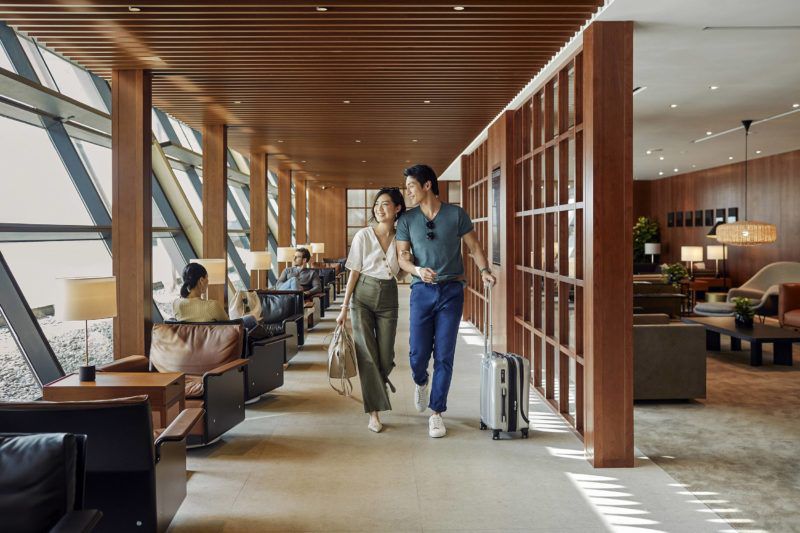 ผู้โดยสารจะสามารถละจากความวุ่นวายและเร่งรีบของสนามบินได้ทันทีที่ก้าวเท้าเข้าสู่บริเวณแผนกต้อนรับ ซึ่งเป็นบริเวณที่จะนำพวกเขาจะไปสู่โอเอซิสแห่งความสงบที่ออกแบบมาให้รู้สึกผ่อนคลายราวกับอพาร์ทเมนท์อันแสนสบายและทันสมัย โดยตกแต่งด้วยวัสดุต่าง ๆ ที่เน้นความเป็นธรรมชาติ เช่น ไม้เชอรี่ และหินอ่อน นอกจากนี้เฟอร์นิเจอร์ภายในห้องรับรองผู้โดยสารที่หุ้มด้วยเส้นใยอัลคันทาร่า (Alcantara) และหนังหลากหลายชนิดยังถูกจัดวางให้เอื้อต่อการพูดคุยสังสรรค์ในพื้นที่เปิด และการพักผ่อนในพื้นที่ส่วนตัวอย่างสงบและสันโดษ