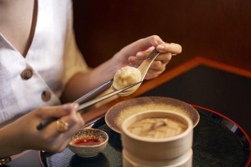นู้ดเดิ้ลบาร์อันเป็นเอกลักษณ์เฉพาะของห้องรับรองผู้โดยสารของสายการบินคาเธ่ย์ แปซิฟิค ทั่วโลกซึ่งได้รับความนิยมมาโดยตลอดก็ได้ทำการเปิดตัวครั้งแรกในประเทศจีนเช่นกัน โดยมีส่วนบริการชาฮ่องกง นู้ดเดิ้ลบาร์ที่เป็นลักษณะครัวเปิดและมีการผสมผสานระหว่างโต๊ะยาวและที่นั่งส่วนตัวในพื้นที่รับประทานอาหารที่ทันสมัยพร้อมไฟแขวนและพัดลมเพดานไม้สีเข้ม ผู้โดยสารสามารถดื่มด่ำกับรสชาติแบบฮ่องกงแท้ ๆ โดยการสั่งก๋วยเตี๋ยวเกี๊ยวน้ำไข่ซึ่งเป็นเมนูกวางตุ้งแบบดั้งเดิม หรือหากต้องการให้ตื่นตัวก่อนขึ้นเครื่องก็สามารถสั่งก๋วยเตี๋ยวดันดันที่เป็นสูตรจากเมืองเสฉวน และแน่นอนว่าผู้โดยสารสามารถอิ่มอร่อยกับอาหารขึ้นชื่อของเซี่ยงไฮ้ เช่น เสี่ยวหลงเปา และอาหารประเภทติ่มซำอื่น ๆ ที่ให้บริการทุกวัน