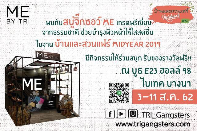 สำหรับภายในงานบ้านและสวนแฟร์ Midyear 2019 ตั้งแต่วันที่ 3 – 11 สิงหาคม 2562 ทางบริษัท ตรี ตรีรัก จำกัด ได้นำผลิตภัณฑ์สบู่จิ๊กซอว์ ME เกรดพรีเมี่ยม มาจัดโปรโมชั่นพิเศษ ดังนี้
