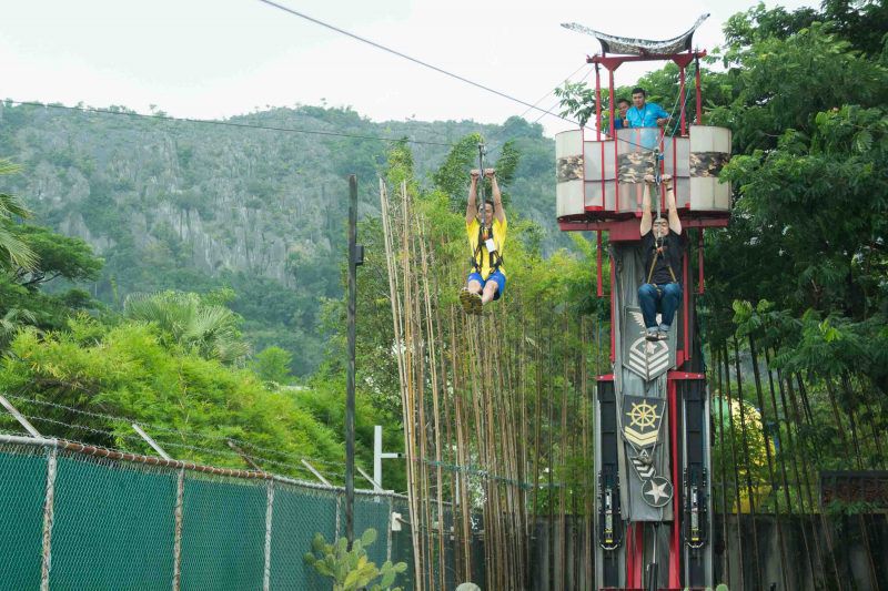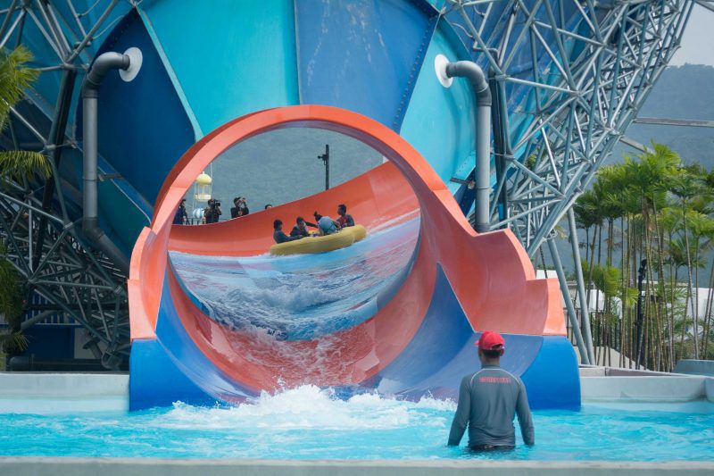 แพยางขนาด 4 ที่นั่งถูกปล่อยลงมาเมื่อเริ่มสัญญาณการปล่อยตัว เราได้ยินเสียงกรี๊ดมาจากปล่องที่ลอยอยู่บนอากาศ ก่อนที่ระลอกน้ำจะไหลออกมาพร้อมแพยางที่เหวี่ยงไปมา เสมือนว่าอยู่พายุทอร์นาโด น้ององุ่นผ่านความท้าทายนั้นมาด้วยรอยยิ้ม ทำเอาคนธรรมดาที่ไม่กล้าลอง ต้องอายไปเลย