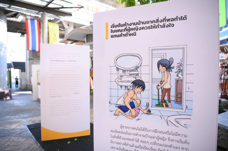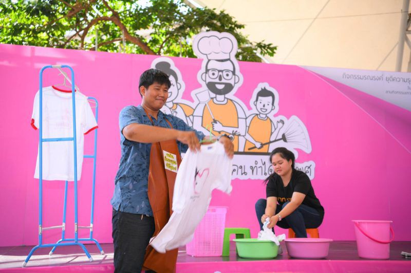 ล่าสุด มูลนิธิหญิงชายก้าวไกล ร่วมกับ สำนักงานกองทุนสนับสนุนการสร้างเสริมสุขภาพ(สสส.)และภาคีเครือข่าย จัดกิจกรรมเนื่องในเดือนรณรงค์ยุติความรุนแรงต่อผู้หญิง ภายใต้แนวคิด “งานบ้านเป็นหน้าที่ของทุกคน ทำได้ทุกเพศ” เพื่อสร้างกระแสเชิญชวนคุณผู้ชายช่วยทำงานบ้าน ไม่ปล่อยให้เป็นหน้าที่ของแฟนหรือภรรยาฝ่ายเดียว หวังลดช่องว่างสร้างความเข้าใจที่ดีในครอบครัวและชีวิตคู่ ทั้งนี้ได้มีการเดินรณรงค์บริเวณป้ายรถเมล์ พร้อมเชิญชวนให้ผู้ชายโพสต์รูปทำงานบ้านติดแฮกแท็ก #Houseworkchallenge #งานบ้านเป็นของทุกคนทำได้ทุกเพศ