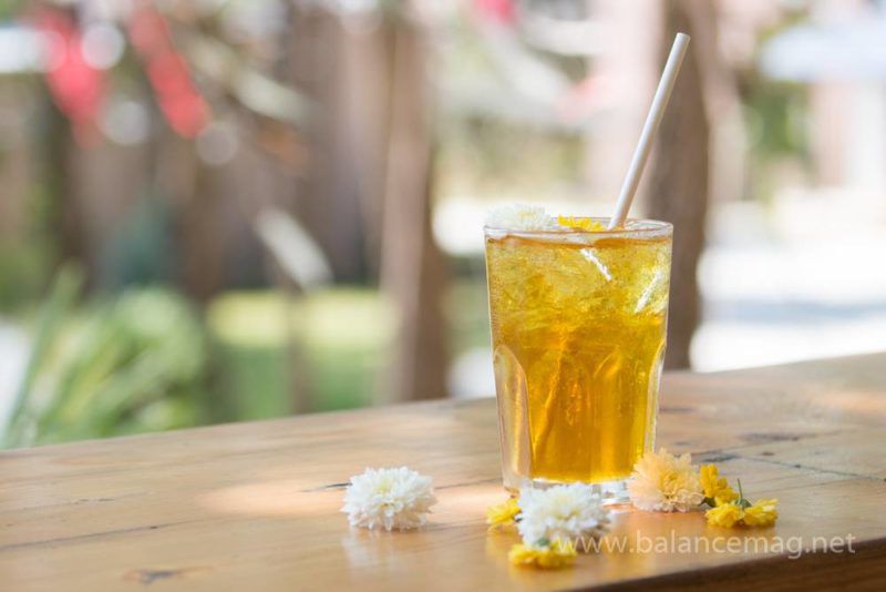และที่ห้ามพลาด เมื่อมาเยือนทุ่งเก๊กฮวยแล้ว ก็ต้องลิ้มรสน้ำเก๊กฮวยแท้ๆ เย็นชื่นใจ พร้อมเมนูสร้างสรรค์อย่าง “เอสเพรสโซ่เก๊กฮวย” การโคจรมาเจอกันของน้ำเก็กฮวยและกาแฟเอสเพรสโซ่รสเข้ม ไม่น่าเชื่อว่าลงตัวสุด และที่ต้องร้องว้าววว คือ “ไอศกรีมเก๊กฮวย” รสชาติเลิศล้ำ หอมกลิ่นเก๊กฮวยแท้ ไม่แท้ก็ไม่รู้จะว่าอย่างไรแล้ว ขายเพียงโคนละ 20 บาท ดีต่อใจ สบายกระเป๋าสุดๆ ทางรีสอร์ทยังมีผลิตภัณฑ์ออร์แกนิคจำหน่ายอีกหลายรายการ มาที่เดียว เที่ยวคุ้ม ครบ