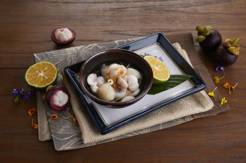ลิ้มรสจานเด่นจากเสน่ห์แห่งอาหารไทยทั้ง 9 รายการ ตั้งแต่จานเรียกน้ำย่อยสุดพิเศษ อาทิ “ข้าวตังหน้าตั้ง”แต่โบราณ “แสร้งว่า” เมนูเด่นดังปรากฏในกาพย์แห่ชมเครื่องคาวหวาน และ ”กุ้งโสร่ง” แสนประณีต หรือจะเป็นจานหลักครบรสชาติอย่าง “งบปลากะพง” อาหารพื้นบ้านไทยรสเข้มกลมกล่อม และ “กุ้งแม่น้ำซอสมะขาม” เมนูยอดนิยมที่ถูกปากทุกท่านอย่างแน่นอน ก่อนลองลิ้มรายการอาหารหวานหารับประทานได้ยากอย่าง “ส้มฉุน” ผลไม้ลอยแก้วแต่โบราณ ที่เชฟสันติภาพบรรจงปรุงด้วยสูตรต้นตำรับแท้เพื่อปิดท้ายอาหารค่ำมื้อพิเศษมื้อนี้อย่างหอมหวานและกลมกล่อมลงตัว