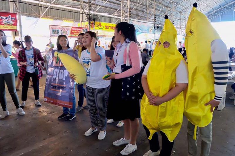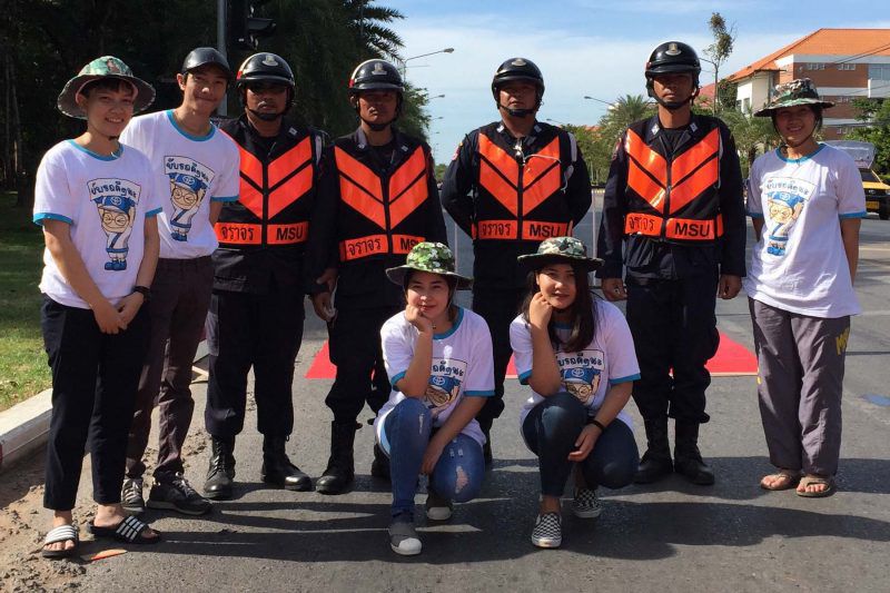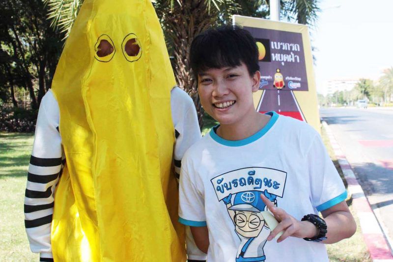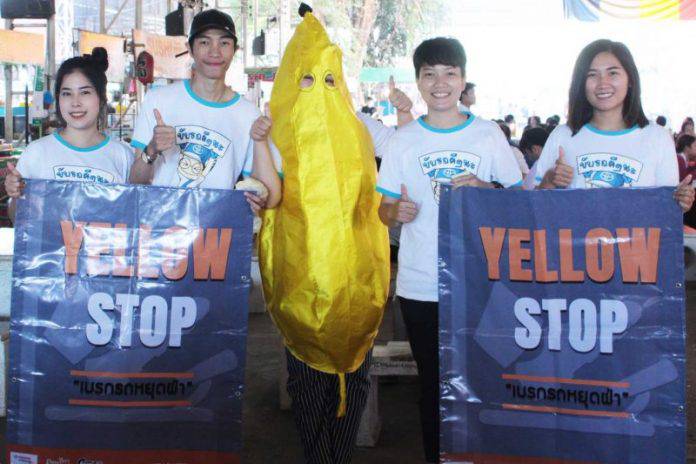 โครงการรณรงค์ “Yellow Stop เบรกรถหยุดฝ่า” นอกจากจะทำเส้น Slow Drive แล้วยังมีการเดินรณรงค์กิจกรรม “น้องกล้วยหอมสัญจร” ประชาสัมพันธ์โครงการ แจกสติ๊กเกอร์น้องกล้วยหอมและให้ความรู้เรื่องสัญญาณไฟจราจรที่ถูกต้อง บริเวณตลาดน้อย หรือโรงอาหารมหาวิทยาลัย กิจกรรมในครั้งนี้ได้รับความสนใจจากนิสิตมหาวิทยาลัยมหาสารคามเป็นจำนวนมาก