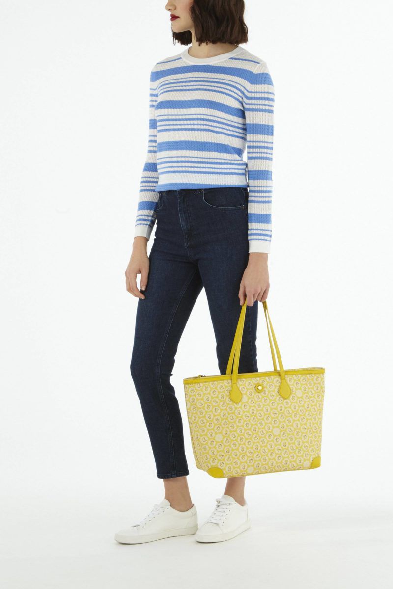 Yellow Freston กระเป๋าโทนสีเหลืองของแสงแดดยามเช้า ที่โดดเด่นด้วยลายพิมพ์ Yellow Freston ดอกเดซี่และกุหลาบขาว เพื่อเติมเต็มความสดใสให้ทุกๆ วันใหม่มีแต่ความสุข ความรัก และแสงสว่างในชีวิต คอลเลคชั่นนี้มีทั้งกระเป๋าสะพายใบใหญ่, คลัช, Tote bag, กระเป๋าสตางค์, กระเป๋าใส่เหรียญ ที่เชื่อว่าจะอินสไปรส์ให้สาวๆอยากลุกขึ้นมาเก็บเงินให้กระเป๋าตุง