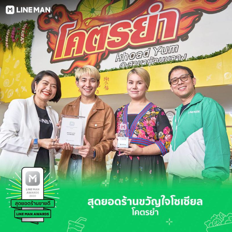 ขณะที่ รมย์ลักษณ์ เนียมเครือ เจ้าของร้านโคตรยำ ที่คว้ารางวัลสุดยอดร้านขวัญใจโซเชียลบน LINE MAN ซึ่งได้ส่งเมนูพิเศษอย่าง “ยำสามสหาย” มาร่วมแคมเปญครั้งนี้ กล่าวว่า “รู้สึกปลื้มเป็นอย่างมากที่ทางร้านโคตรยำได้ถูกคัดเลือกให้รับรางวัลจาก LINE MAN โดยทางร้านมองว่าการได้รับการสนับสนุนจาก LINE MAN นั้นนับว่าเป็นส่วนสำคัญในการทำร้านอาหารเป็นอย่างมาก ซึ่งนอกจากจะช่วยด้านยอดขาย ก็ยังช่วยให้ทางร้านได้มีช่องทางการสื่อสารไปยังลูกค้า ได้รับการประชาสัมพันธ์เป็นอย่างดี ทำให้ร้านเป็นที่รู้จัก มีลูกค้าเข้ามาอุดหนุนอย่างไม่ขาดสาย เหนือสิ่งอื่นใดคือทำให้ลูกค้าในวงกว้างสามารถเข้าถึงอาหารของทางร้านได้ง่าย และสะดวกสบาย ประหยัดเวลาการเดินทาง ต้องขอบคุณทั้งลูกค้าทุกท่าน และ LINE MAN ซึ่งต่างมีส่วนช่วยสร้างการเติบโตให้กับร้านโคตรยำตลาดเวลาที่ผ่านมา”