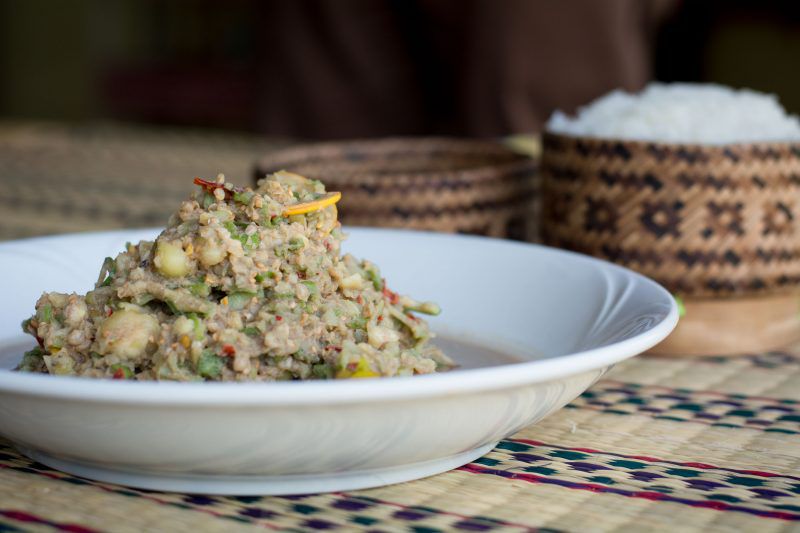 มาเยือนแดนอีสานใต้ก็ต้องได้กินอาหารท้องถิ่น ที่ ต.หินเหล็กไฟ อ.คูเมือง มีศูนย์การผลิตอาหารแปรรูป จากชาวบ้านในชุมชน โดยกลุ่มพัฒนาส่งเสริมอาหารพื้นบ้าน วันนี้ได้ชิม ปลาส้ม ปลาจ๋อมเสวยผัด ปลาร้าข้าวคั่ว แกงอ่อมไก่ ล้อมวงจกข้าวเหนียวกันเพลิน แม้จะไม่คุ้นเคยกับรสชาติมากนัก แต่ก็พอลื่นไหลไปกับบรรยากาศแห่งความเฮฮาที่เกิดขึ้นในมื้อนั้น