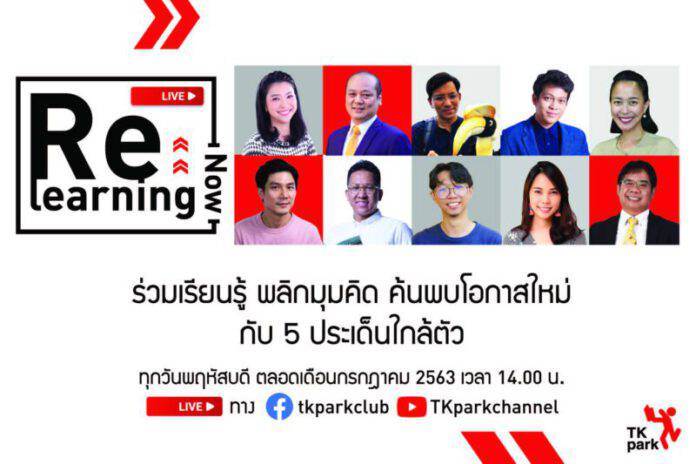 TK Park เปิดพื้นที่แลกเปลี่ยนความรู้และประสบการณ์ใหม่ที่กำลังมีอิทธิพลต่อโลก ร่วมเรียนรู้ พลิกมุมคิด ค้นพบโอกาสใหม่ กับ ประเด็นใกล้ตัวในกิจกรรม Re:learning NOW