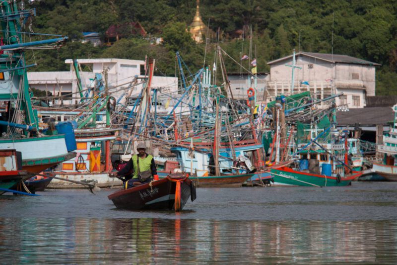 มนุษย์เราเป็นเพียงสิ่งมีชีวิตตัวจ้อยบนโลกใบนี้ แต่พลังที่ยิ่งใหญ่ของมนุษย์ก็สามารถเปลี่ยนแปลงโลกทั้งใบได้ จากจุดชุมวิวเขามัทรี เราได้เห็นมุมสูงบริเวณปากน้ำชุมพร ที่อยู่อาศัยของชาวประมงในพื้นที่ ชุมชนแห่งนี้อยู่ไม่ไกลจากตัวเมืองมากนัก และสามารถเดินทางด้วยรถยนต์ไปถึง