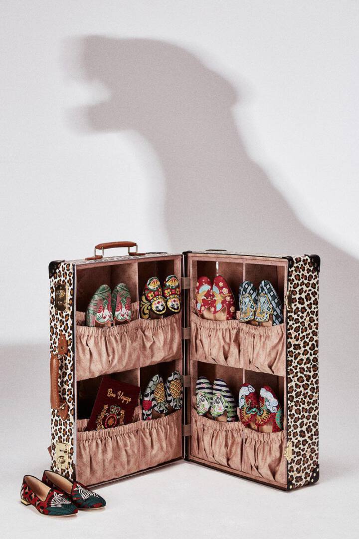 การเดินทางแสนวิเศษที่มาบรรจบกันระหว่างแบรนด์รองเท้า ‘Charlotte Olympia’ และ แบรนด์กระเป๋าเดินทาง‘Globe-Trotter’ จากประเทศอังกฤษ โดยทั้งสองได้ร่วมกันสร้างสรรค์แคปซูลคอลเลกชั่น ซึ่งประกอบด้วยกระเป๋าใส่รองเท้า หรือ Shoe Case ในรูปแบบกระเป๋าเดินทางลายเสือดาวที่มีขนาด 30 นิ้วและ 20 นิ้ว ภายในกระเป๋าบุด้วยผ้าแจ๊กการ์ดลายลายใยแมงมุมที่แบ่งออกเป็น 8 ช่อง เพื่อสามารถบรรจุรองเท้าได้หลากหลาย เช่น รองเท้าส้นสูง แซนดัล และรองเท้าบู๊ต นอกจากนี้ยังมีถุงใส่รองเท้าและที่ช่วยดันทรงรองเท้าสำหรับรองเท้าคู่ใจของสาวๆ จึงมั่นใจได้ว่ารองเท้าจะถูกเก็บไว้ในสภาพที่ดีในทุกช่วงขณะเดินทาง