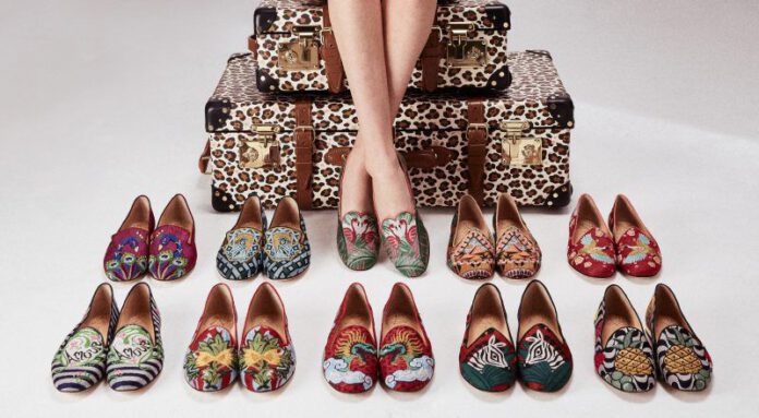ในเมื่อเรามีกระเป๋าใส่รองเท้าแล้ว แน่นอน!! สิ่งที่ขาดไปไม่ได้เลย คือรองเท้าสุดเก๋ของคุณนั้นเอง ทาง Charlotte Olympia เอง ได้ออกคอลเลกชั่น ‘Wish You Were Here’ ในธีมการเดินทาง ด้วยรองเท้าส้นแบนคู่สวยตกแต่งด้วยการปักลายที่เล่าถึงเรื่องราวการเดินทางไปสู่จุดหมายปลายทางอันแปลกใหม่ ไม่ว่าจะเป็นลายกุหลาบอังกฤษ มังกรจีน และตุ๊กตามาทริออสก้า (Matrioska) โดยดีไซน์ของคอลเลกชั่นนี้มีทั้งหมด 13 แบบ อีกทั้งยังมีกระเป๋าใส่พาสปอร์ต ‘Bon Voyage’ สีเบอร์กันดีที่ทำการหนังคุณภาพดีทำให้ดูโดดเด่นทุกครั้งเมื่อถือ