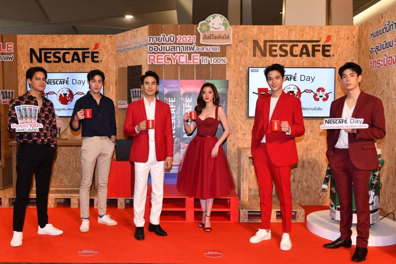วิคเตอร์ เซียห์ (ที่ 2 จากซ้าย) ประธานกรรมการและประธานคณะผู้บริหาร เนสท์เล่ อินโดไชน่า เปิดงาน “เนสกาแฟ เดย์ 2020” เชิญชวนคนไทย “เชื่อมทุกความผูกพัน ชงเพื่อความยั่งยืน” ฉลองวันกาแฟสากล กับเนสกาแฟในบรรจุภัณฑ์รักษ์โลก ทั้งซองเนสกาแฟ เบลนด์ แอนด์ บรู แบบ Mono Structure ที่ผลิตจากพลาสติกตระกูลเดียวกันและนำไปรีไซเคิลได้ 100% ครั้งแรกของโลก รวมทั้งเนสกาแฟกระป๋องพร้อมดื่มที่เปลี่ยนไปใช้กระป๋องอะลูมิเนียม สามารถนำไปรีไซเคิลได้ 100% ตอบโจทย์พันธกิจด้านความยั่งยืนในการเปลี่ยนบรรจุภัณฑ์เนสกาแฟทุกกลุ่มผลิตภัณฑ์ให้นำไปรีไซเคิลได้ 100% โดยมี โจโจ้ เดลา ครูซ (ที่ 2 จากขวา) ผู้อำนวยการบริหาร ธุรกิจผลิตภัณฑ์กาแฟและครีมเทียม บริษัท เนสท์เล่ (ไทย) จำกัด นาริฐา วิบูลยเสข (กลาง) ผู้จัดการธุรกิจกาแฟปรุงสำเร็จ บริษัท เนสท์เล่ (ไทย) จำกัด ธนวรรธน์ วรรธนะภูติ (ซ้ายสุด) จิรายุ ตั้งศรีสุข (ขวาสุด) สองพรีเซนเตอร์เนสกาแฟ เบลนด์ แอนด์ บรู ร่วมงานซึ่งจัดขึ้นที่ รอยัล พารากอน ฮอลล์ 3 ศูนย์การค้าสยามพารากอน