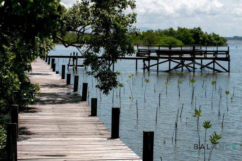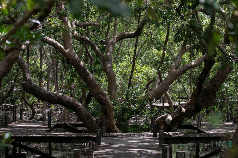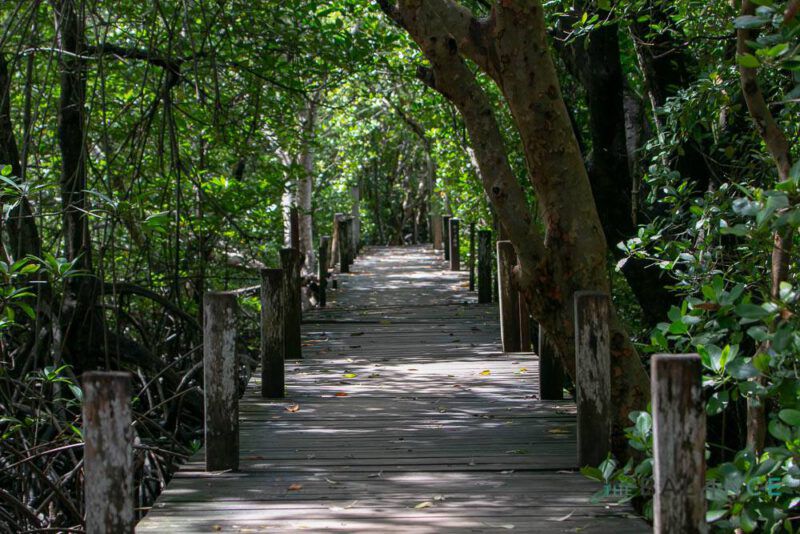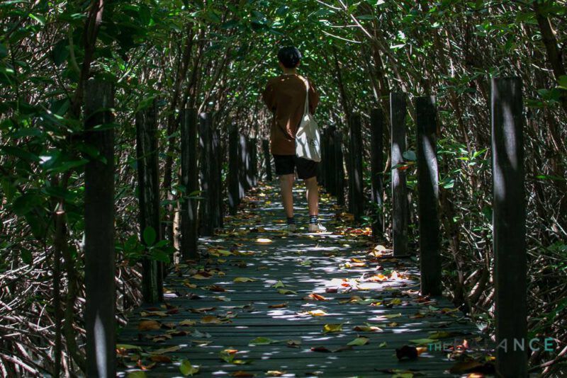 ทุ่งโปรงทองเต็มไปด้วยต้นโปรงขึ้นอยู่อย่างหนาแน่น เมื่อโดนแสงแดดกระทบก็ยิ่งสะท้อนความเหลืองอร่าม ขณะที่ทางเดินสู่ป่าชายเลน ก็มีภาพความสมบูรณ์ให้ชมแบบไม่ซ้ำ บ้างก็เป็นแนวสะพานริมชายทะเล บ้างก็เป็นป่าครึ้มเสมือนถ้ำย่อยๆ
