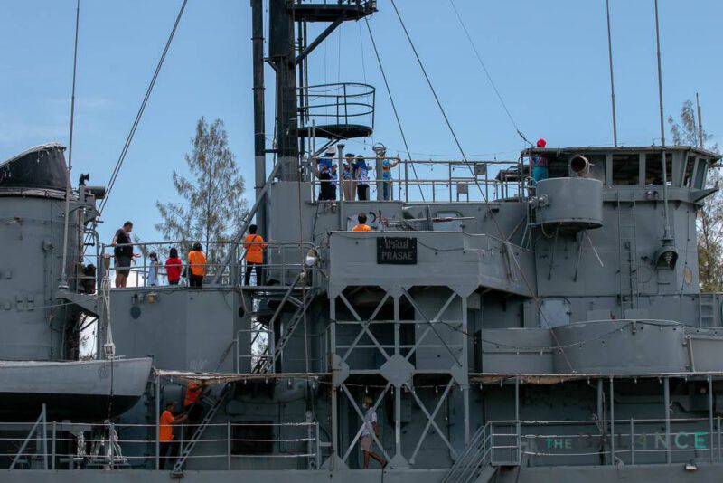 จากทุ่งโปรงทองเข้าสู่ป่าชายเลนอีกกว่า 2 กิโลเมตร ก็จะไปทะลุบริเวณปากน้ำประแส บริเวณเรือรบหลวงปลดระวาง อีหนึ่งเกียรติประวัติของชาวระยอง ตั้งอยู่ริมชายหาดกว้าง ท่ามกลางวิถีอันงดงามของผู้คน