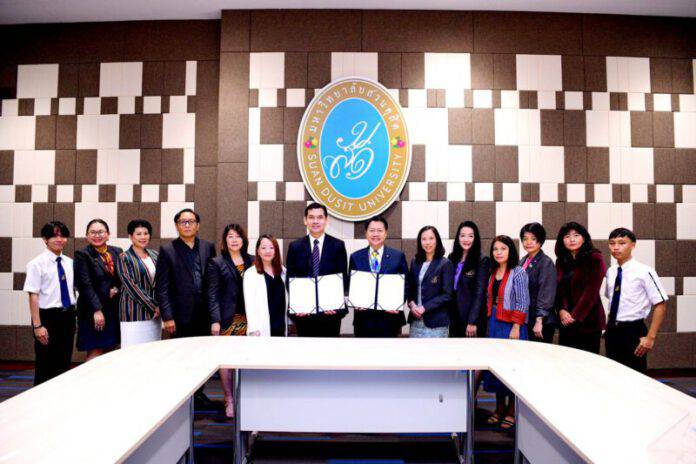 แพทย์แผนไทย ดร.อมรรัตน์ เรืองสกุล ประธานกรรมการพัฒนาหลักสูตรนิเทศศาสตรบัณฑิต สาขาวิชานิเทศศาสตร์นวัตกรรมและผู้ประกอบการธุรกิจ กล่าวว่า ม.สวนดุสิต ร่วมกับ สสส. บันทึกความเข้าใจในความร่วมมือทางวิชาการและวิชาชีพ เพื่อส่งเสริม สนับสนุน การจัดกิจกรรมทางวิชาการวิชาชีพ นอกจากนี้ ได้ประสานความร่วมมือกับองค์กร สถาบัน บริษัท หน่วยงานที่เกี่ยวข้องกับด้านนิเทศศาสตร์ หรือด้านมัลติมีเดีย และด้านสุขภาวะในประเทศ ศึกษาวิจัยและพัฒนาเทคโนโลยีแบบหลอมรวมสื่อ โดยจัดฝึกอบรมสัมมนาว่าด้วยการศึกษาและการประกอบอาชีพเพื่อสนับสนุนการศึกษาและการให้ความรู้แก่นักเรียน นักศึกษา ประชาชน เน้นเรื่องคุณธรรมและความสุข ทำให้นักศึกษาได้รู้จักตนเอง สร้างคุณค่าในตัวเองสู่เป้าหมายของชีวิต เพิ่มพลังบวกให้แก่ตัวเอง ตระหนักและปฏิบัติเพื่อให้เห็นศักยภาพความเป็นนักนิเทศศาสตร์ที่รู้จักตนเองและผู้อื่น สร้างสรรค์งานเพื่อความสุขให้ตัวเอง สังคม ชาติ อย่างมีคุณธรรม จริยธรรม จิตอาสา และรับผิดชอบต่อสังคม