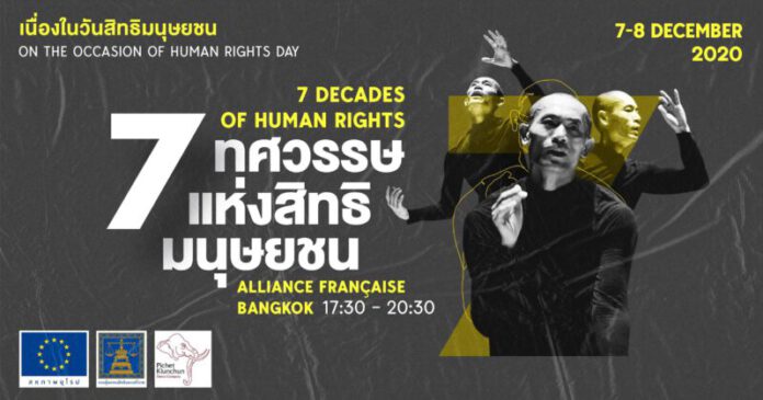 การแสดงร่วมสมัยครั้งพิเศษชื่อ “7” ซึ่งรังสรรค์โดย พิเชษฐ กลั่นชื่น ศิลปิน นักเต้น โขน และนักเต้นร่วมสมัยของไทยผู้ได้รับการยกย่องจากนานาประเทศ โดยในระหว่างการแสดงครั้งนี้ หลักการ สำคัญๆ ของกฎกติกาด้านสิทธิมนุษยชนระหว่างประเทศทั้ง 7 ฉบับที่ประเทศไทยได้ให้สัตยาบันไว้ รวมทั้ง อุปสรรค ซึ่งทำให้สิทธิของคนชายขอบบางกลุ่มยังไม่ได้รับความสนใจเท่าที่ควร จะถูกสื่อสารผ่านนาฏศิลป์ ร่วมสมัยตลอดหนึ่งชั่วโมงเต็มหลังจากการแสดงจบลงแล้วผู้ชมยังจะได้ร่วมสนทนากับคุณพิเชษฐ อย่างเปิดอก ในเรื่องของความเชื่อมโยงระหว่างการเต้นรำกับสิทธิมนุษยชน รวมทั้งบทบาทของการแสดงออกทางศิลปะ ต่างๆ ต่อการผลักดันสิทธิมนุษยชนให้ก้าวหน้าอีกด้วย