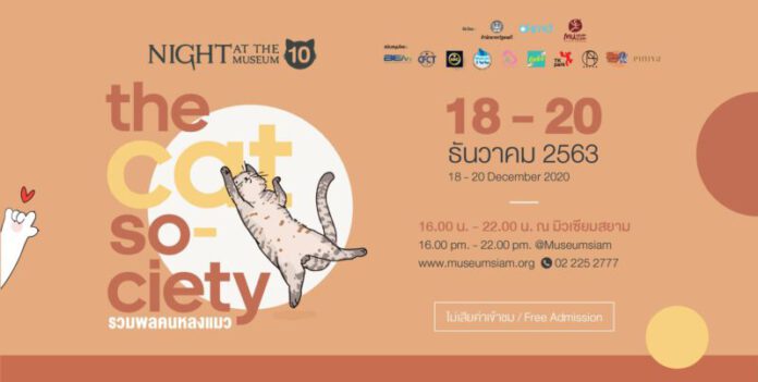 มิวเซียมสยาม ขอเชิญชวนทาสแมวมาเที่ยว งานเทศกาลท่องเที่ยวพิพิธภัณฑ์ยามค่ำคืน Night at The Museum ครั้ง 10 ตอน The cat society “รวมพลคนหลงแมว” ในวันศุกร์ที่ 18 ถึงวันอาทิตย์ที่ 20 ธันวาคม 2563 ตั้งแต่เวลา 16.00 – 22.00 น.