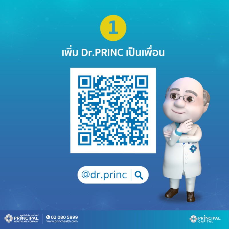 Dr.PRINC TeleHealth ไกลแค่ไหน ก็ปรึกษาได้  บริการให้คำปรึกษาจากแพทย์จากเครือรพ.พริ้นซ์ เป็นหนึ่งในบริการรูปแบบใหม่ ผ่านช่องทาง Line@: @Dr.PRINC หรือ https://lin.ee/VqW2sGd  ซึ่งบริการนี้เหมาะสำหรับผู้ป่วยที่มีอาการเล็กน้อย และใช้สำหรับคัดกรองโรคโควิด 19 เบื้องต้น  โดยรับคำแนะนำจากบุคลากรทางการแพทย์ผ่านไลน์ ไม่ว่าจะอยู่ที่ไหนก็สามารถพบแพทย์ได้ เพื่อลดการเดินทางมายังโรงพยาบาล และลดความเสี่ยงการเดินทางออกนอกบ้าน  หรือ ใช้สำหรับการรับคำแนะนำเบื้องต้น ก่อนเดินทางเข้ามารับบริการตรวจที่โรงพยาบาลในขั้นตอนต่อไป
