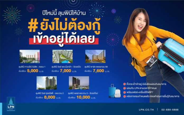 บริษัท แอล.พี.เอ็น.ดีเวลลอปเมนท์ จำกัด(มหาชน)(LPN) ประเดิมกระตุ้นตลาดต้นปี เปิดตัวแคมเปญใหม่ “#ยังไม่ต้องกู้ เข้าอยู่ได้เลย” ให้ลูกค้าผ่อนดาวน์ได้ 2 ปี เริ่มต้นที่ 5,000 บาท แถมฟรีเฟอร์นิเจอร์ เครื่องใช้ไฟฟ้า พร้อมเข้าอยู่ได้ทันทีกับ 5 โครงการเด่นหวังจับกลุ่มฟรีแลนซ์ ค้าขายออนไลน์ หรือผู้ที่ไม่ได้มีรายได้ประจำ สร้างโอกาสให้ลูกค้ามีบ้านได้ง่ายขึ้นในราคาที่จับต้องได้ (Affordable Price) ตามเจตนารมณ์ของ LPN ที่ต้องการให้คนไทยมีบ้านเป็นของตนเองภายใต้แบรนด์ “ลุมพินี”