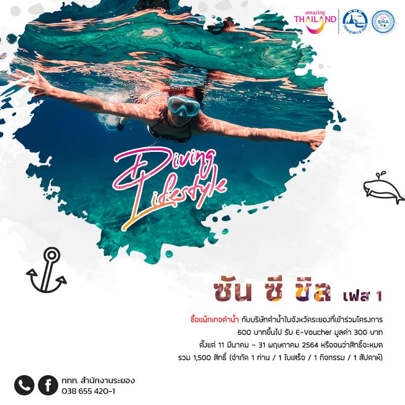 การท่องเที่ยวแห่งประเทศไทย (ททท.) สำนักงานระยอง ร่วมกับสภาอุตสาหกรรมการท่องเที่ยวจังหวัดระยอง สมาคมธุรกิจท่องเที่ยวจังหวัดระยอง และสมาคมท่องเที่ยวเกาะเสม็ด มอบ E-Voucher (คูปองอิเล็กทรอนิกส์) มูลค่า 300 บาท ให้แก่นักท่องเที่ยวที่มากิน เที่ยว พักผ่อน เพื่อกระตุ้นให้เกิดการเดินทางท่องเที่ยวเข้าสู่จังหวัดระยอง ภายใต้แคมเปญ “เที่ยวดีมีคืน”