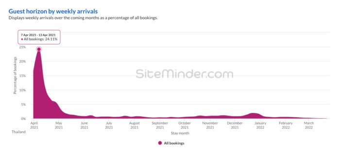 จำนวนนักท่องเที่ยวกลุ่มนี้ส่งผลให้อัตราการจองที่พักของโรงแรมในไทยเพิ่มสูงขึ้น โดยนับตั้งแต่วันที่ 1 กุมภาพันธ์ อัตราการจองที่พักเพิ่มสูงขึ้นจากต่ำกว่า 25% ขึ้นมาที่เกือบ 50% เทียบกับยอดจองในปี 2563 ซึ่งน้อยกว่าอัตราการจองที่พักเฉลี่ยทั่วโลกเพียง 1% เท่านั้น