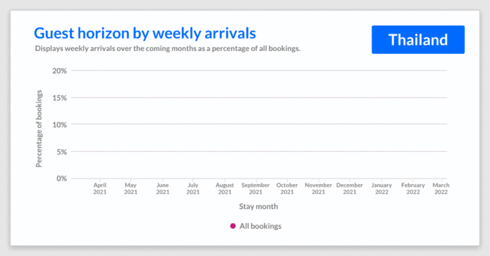จากที่ผ่านมา ประเทศไทยเป็นประเทศที่รายได้หลักมาจากอัตราการจองที่พักของนักท่องเที่ยวชาวต่างชาติราว 70% เมื่อเกิดการแพร่ระบาดขึ้น ประเทศไทยได้หันมาพึ่งพานักท่องเที่ยวในประเทศเพิ่มขึ้น โดยอัตราการจองที่พักของโรงแรมในไทยตลอดเดือนมีนาคมมาจากนักท่องเที่ยชาวไทยมากกว่า 86% เทียบกับอัตราการจองที่พักในเดือนเมษายนปีที่แล้วที่มีเพียง 34%