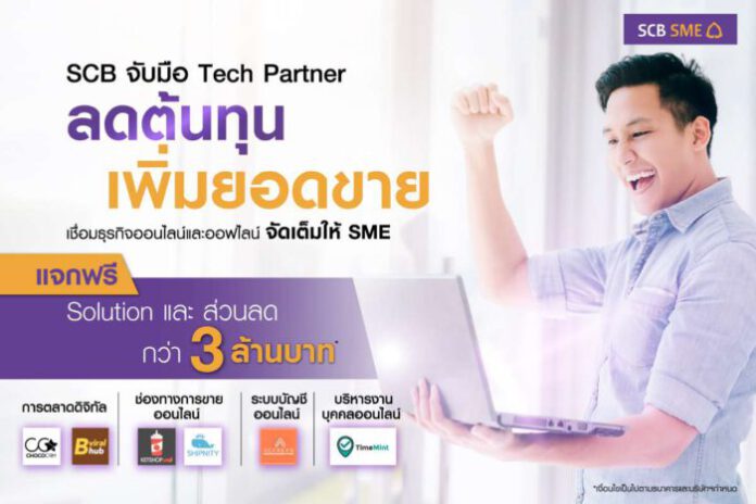 ซึ่งธนาคารได้จับมือกับพันธมิตรทั้งองค์กรภาครัฐ และภาคธุรกิจ เพื่อร่วมกันส่งต่อความช่วยเหลือไปยังผู้ประกอบการเอสเอ็มอีให้ได้ผลดียิ่งขึ้นจึงได้ผนึกความร่วมมือกับเครือข่ายพันธมิตรสตาร์ทอัพทางด้านดิจิทัล 6 แห่ง ซึ่งเป็นผู้พัฒนาโซลูชั่นเสริมประสิทธิภาพทางด้านธุรกิจ มอบโซลูชั่นที่จะช่วยเพิ่มประสิทธิภาพการบริหารจัดการธุรกิจ ช่วยลดต้นทุน และเพิ่มยอดขายให้กับผู้ประกอบการเอสเอ็มอีอย่างครบวงจร ทั้งนี้ เพื่อกระตุ้นให้เอสเอ็มอีไทยกล้าที่จะเปลี่ยนผ่านสู่การใช้เครื่องมือดิจิทัล และเพื่อช่วยลดต้นทุนธุรกิจ จึงเปิดโอกาสให้ลูกค้าเอสเอ็มอีธนาคารไทยพาณิชย์ได้ใช้งานดิจิทัลโซลูชั่นจากพันธมิตรทั้ง 6 องค์กรได้ฟรีและได้รับส่วนลดค่าบริการ จำนวน 600 สิทธิ์ ครอบคลุมทั้ง ระบบบัญชี การบริหารงานบุคคล การพัฒนาช่องทางขายออนไลน์ และการตลาดดิจิทัล รวมมูลค่ากว่า 3 ล้านบาท