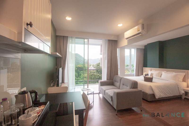 ห้องพักถูกออกแบบให้มีสัดส่วนที่ลงตัว เหมาะกับการมาพักผ่อนกันยาวๆ หรือจะเลือกเป็น WORKATION เที่ยวไป ทำงานไป ลานระเบียงมีความกว้างกำลังดี ทุกห้องสามารถมองเห็นวิวเขาที่โอบล้อม ข้าวของเครื่องใช้เลือกวัสดุที่ดีมีคุณภาพ โดยเฉพาะที่นอนหนาแน่นนุ่ม ผ้าเช็ดตัว ผ้าปูที่นอน ปลอกหมอน ผ้าห่ม สะอาดเอี่ยม ถูกใจมากๆ ก็ตรงหมอนอันโตที่จัดมาให้เต็มเตียง